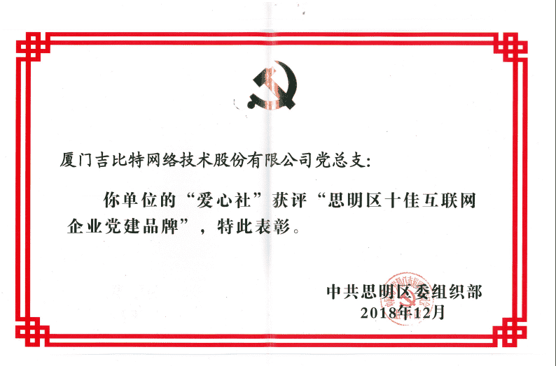 经初审评选、、、、网络评选和专家评审等环节,,,"厦门LEWIN乐玩网络技术股份有限公司党总支-爱心社" 从全区28个参评党建品牌中脱颖而出,,,获评"思明区十佳互联网企业党建品牌"。。。