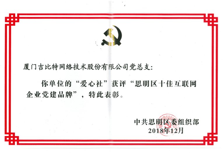 经初审评选、、、网络评选和专家评审等环节,,,"厦门LEWIN乐玩网络技术股份有限公司党总支-爱心社" 从全区28个参评党建品牌中脱颖而出,,,,获评"思明区十佳互联网企业党建品牌"。。。